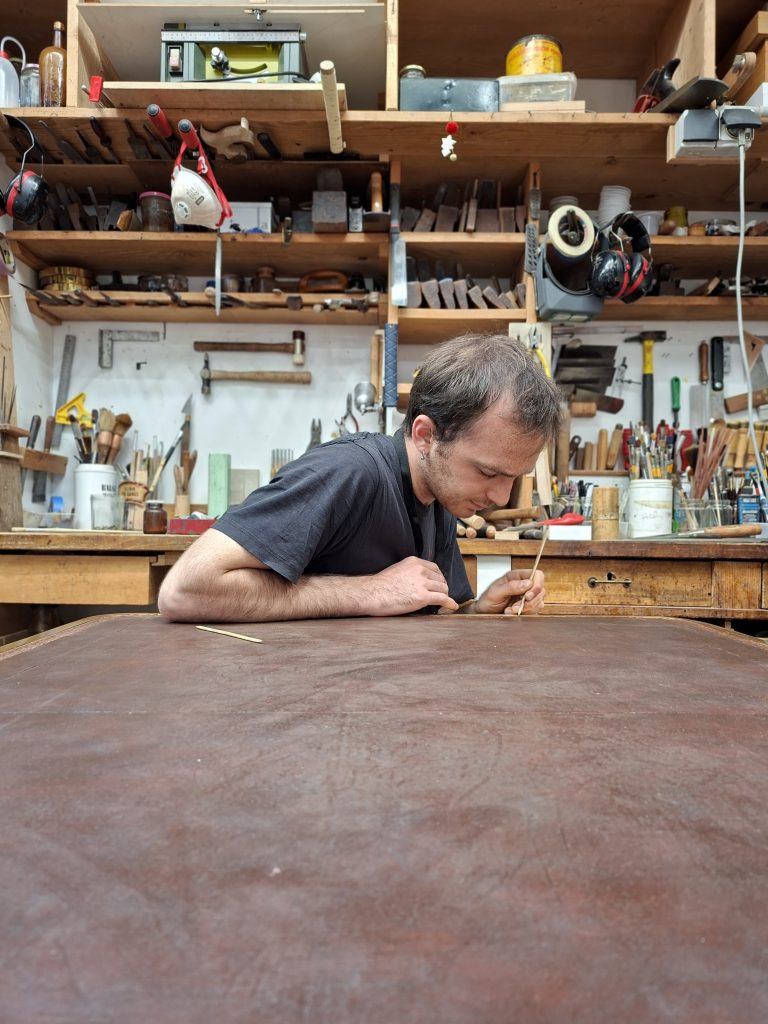Tristan Desforges, Elève de Maître d’art, a été nommé en 2018 « Un des Meilleurs Ouvriers de France » en restauration de mobilier. Il exerce son activité au sein de l’atelier depuis 2011, après avoir suivi plusieurs années de formations spécifiques à l’ébénisterie, la marqueterie, la gravure ornementale et la conservation-restauration de mobilier. En mai 2020, il deviendra gérant de l’atelier. Sa principale mission sera de pérenniser l’héritage de ses prédécesseurs, tout en adaptant les savoir-faire de l’atelier aux dernières recherches spécifiques au métier.